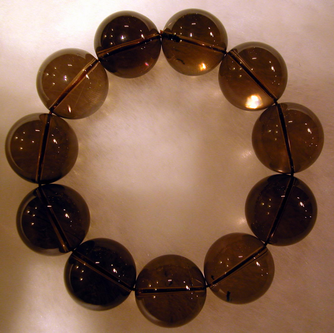 代表刚毅.坚韧.克制.有信念.事业易成。烟水晶是水晶家族中最富有吸引力的成员之一,简称烟晶。它是一类颜色为烟灰色、烟黄、黄褐、褐色的水晶品种。烟晶以色均、无绵、明净者为佳品。有人认为这种宝石漂亮的色彩是由原生矿床周围岩块中含有镭放射物质引起的,实际上在瑞士阿尔卑斯山所见到的围岩中,放射性含量随高度而变化。这个变化引起该地区烟晶的颜色或色调有不同的差异。按照这个不一致性看法,专家们可以有较大把握找到所要的水晶及其变种。实验中,白水晶通过放射性照射,的确可以得到烟晶。 烟晶发源地在苏格兰,那里的人们广泛用它来装饰五彩缤纷的民族服装,成为事实上的“国石”。尽管对宝石家来说,历史和传统的兴趣只是一个产地,但实际上,其它地区烟晶比苏格兰还要多。有烟晶矿床的美国、瑞士、锡兰、西班牙为世人知晓,特别是缅因洲、新罕布什尔和科罗拉多地区。烟晶中的茶褐色、烟黄色者称作茶晶。其色犹如烟气在空气飘逸。它的颜色是由辐射物质引起的。根据赫尔巴1979年研究认为,石英中含有铝代硅时,用钻60照射无色水晶,即能变成茶色水晶。市场上的茶色眼镜及饰品几乎都是辐射变色的制品。很早以前,一些地方虽出产烟晶,却不会利用。《湖南通志》中说道:“永绥出水晶石,间有以茶晶者蔡璞,土人勿能用,故勿奇也”。